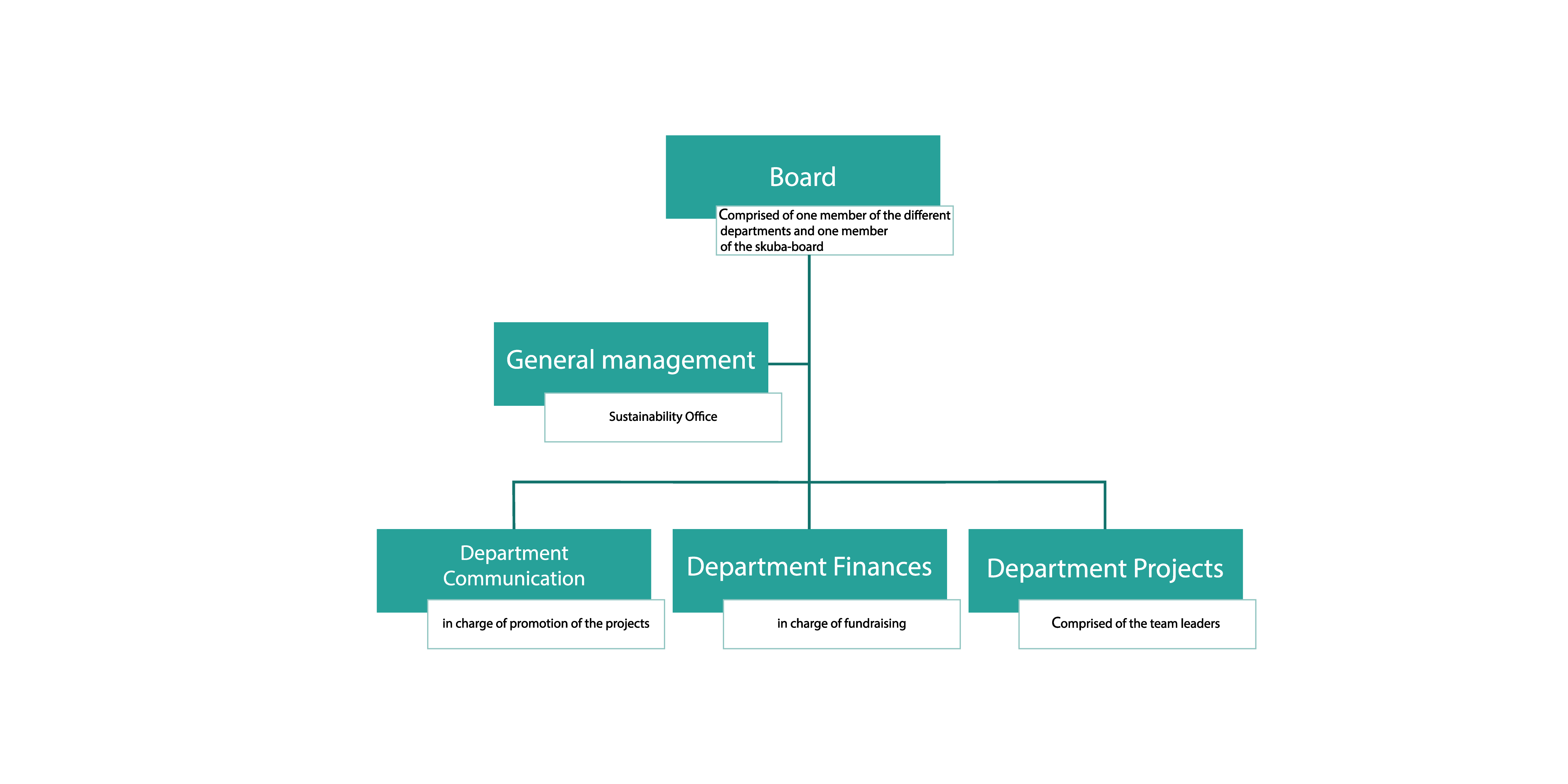 The Board is made up of 10 members, including the founding members of the AG Nachhaltigkeit and at least one member of the skuba Board. At least half of the members are students at the University of Basel. The members are usually self-nominated according to how much time and energy they are able to invest. The tasks of the Board include working closely with the Core Management Team on project management as well as structural and organizational decisions; financial decision making and annual revisions of the accounts, as well as fundraising efforts and budgeting; and public relations and communication in the form of community outreach, advertisement for different projects, and an active and informative social media presence.